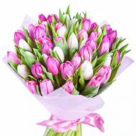 Если вам кажется, что букеты из 3-5 тюльпанов выглядят немного скучно, пышная цветочная комбинация из нескольких десятков любимых свежих весенних цветов наверняка превзойдет ваши ожидания. «Облако тюльпанов» балует оригинальным нежным сочетанием игривых розовых бутонов с безмятежными белоснежными тюльпанами. Они идеально дополняют друг друга, создавая элегантную композицию, символизирующую радость и счастье. Такой букет идеально подойдет для романтического свидания, но также будет не менее уместным на дне рождения мамы, сестры или близкой подруги. Его пьянящий аромат наполнит комнату приятной сладостью, которая будет долго радовать виновницу торжества.